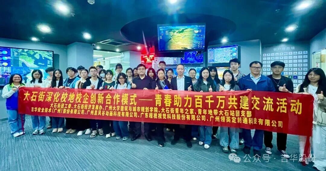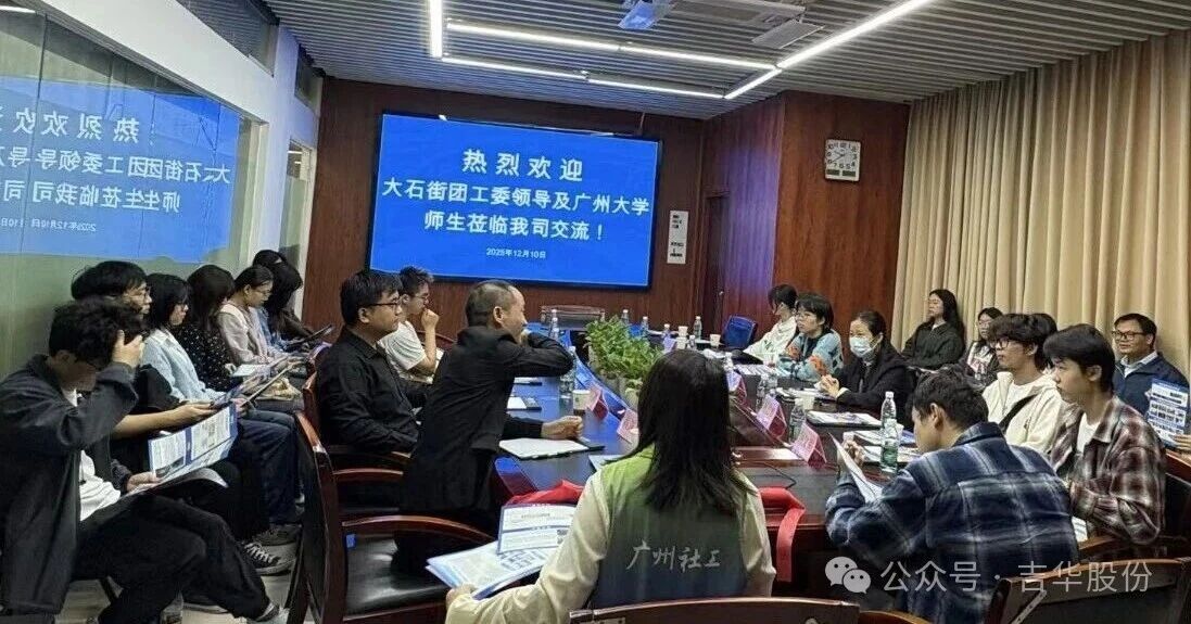 近日,在大石街团工委的组织下,广州大学建筑与城市规划学院师生走进吉华股份,开展了“青春助力百千万共建”校企交流活动。本次活动旨在通过实地参访与互动交流,搭建校企协同、双向赋能的人才共育平台。公司副总经理李旭鹏、总经办主任兼人力资源总监赖渊涛共同接待并与师生展开交流。