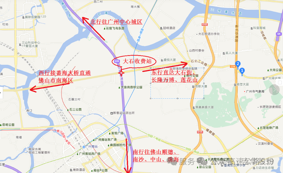 向北可更快捷进入广州中心城区,向南可快速到达番禺西部、佛山顺德、南沙、中山、珠海等地。