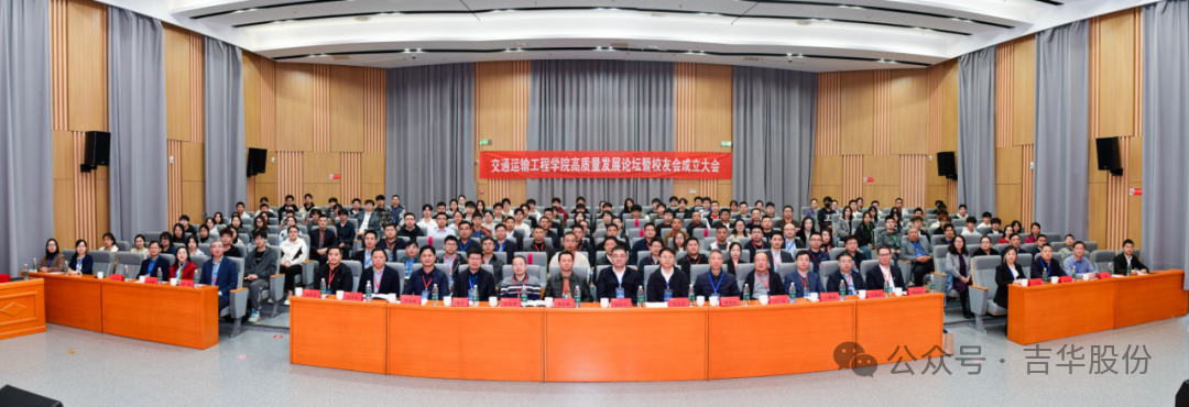 在交通运输工程学院高质量发展论坛暨校友会成立大会上,副校长陆伟东为学院校友会授牌授旗,学院院长周峰汇报了学科建设与人才培养近期进展,新当选的校友会会长李俊才教授作了就职致辞。