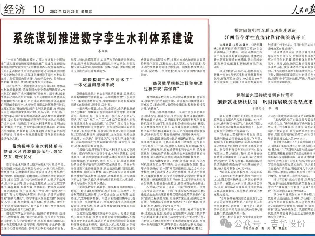 《人民日报》发表李国英部长署名文章:系统谋划推进数字孪生水利体系建设